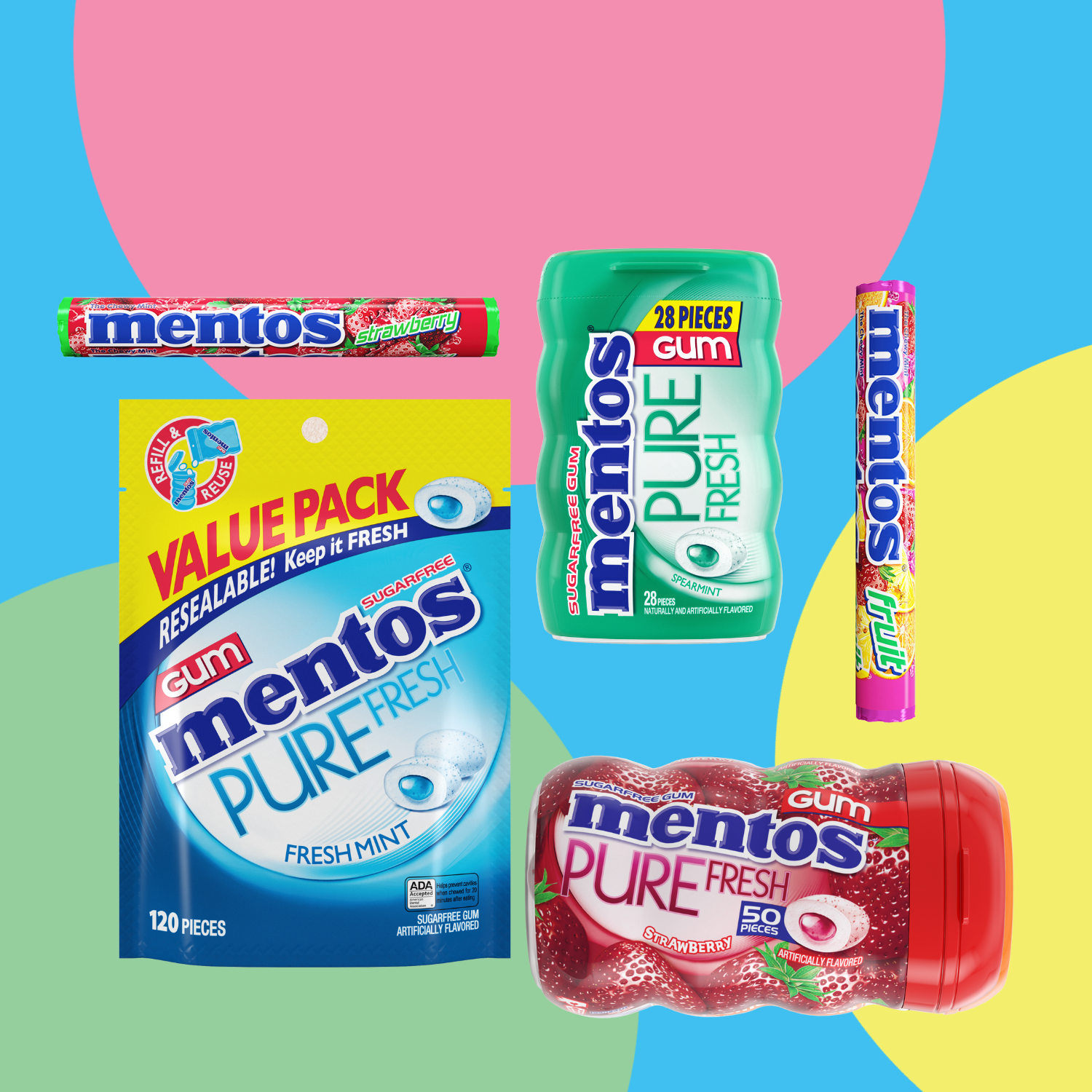 MENTOS PURE FRESH GUM NOW IN A PAPERBOARD BOTTLE*